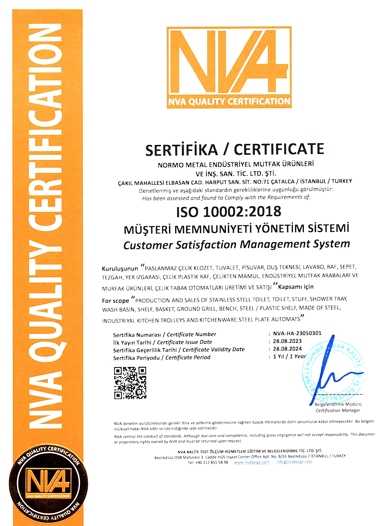 Normo Metal, sektöründe lider konumunu sürdürmek için kalite ve uygunluk standartlarına titizlikle uyan bir şirkettir. Ürün portföyümüzde yer alan her metal ürün, uluslararası standartlara uygun olarak üretilmekte ve müşterilerimize en yüksek kalitede ürün sunma taahhüdümüzü yansıtmaktadır.